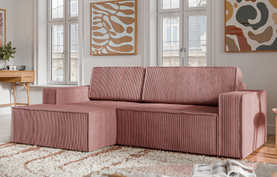 Narożnik z funkcją spania codziennego typu DL Como to idealna propozycja dla osób ceniących funkcjonalność, wygodę i nowoczesny design. Jego prosta, kubistyczna forma doskonale wpisuje się w aktualne trendy wnętrzarskie, a zarazem sprawia, że mebel ten pasuje do różnych stylów aranżacyjnych – od minimalistycznych po klasyczne. Rozkładanie narożnika wspomagane jest specjalnymi automatami sprężynowymi, dzięki czemu przekształcenie go w łóżko nie wymaga użycia dużej siły – to rozwiązanie idealne do codziennego użytkowania. Funkcja spania typu DL gwarantuje równą i wygodną powierzchnię do snu, a pojemnik na pościel umieszczony pod siedziskiem zapewnia dodatkową przestrzeń do przechowywania rzeczy i drobnych przedmiotów.