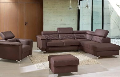 Nowoczesny narożnik do salonu z eleganckimi przeszyciami