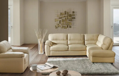 Stylowe przeszycia poduszek oparciowych oraz nakładane podłokietniki dodają narożnikowi elegancji i nowoczesnego charakteru. Dostępny jest w wersji prawo- i lewostronnej oraz w szerokim wyborze tkanin i skór naturalnych.