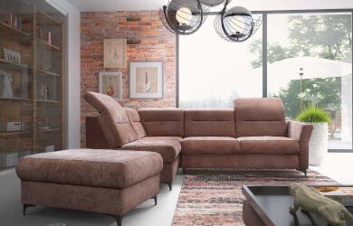 Model został wyposażony w funkcję spania typu Delfin, która pozwala w szybki i intuicyjny sposób przekształcić narożnik w przestronne miejsce do nocnego i dziennego wypoczynku. Dodatkowo narożnik posiada regulowane zagłówki oraz pojemnik na pościel, co zwiększa komfort użytkowania i funkcjonalność mebla. Model oferowany jest w wersji lewostronnej i prawostronnej, co pozwala dopasować narożnik do układu salonu.